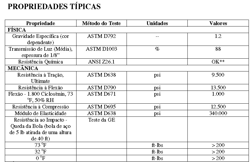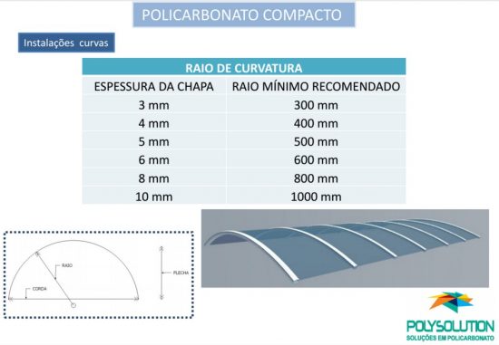 Policarbonato Compacto transparente Norma NR 12 para Proteção de maquinas e equipamentos Polysolution – para cada espessura se tem um raio minimo em cado de curvatura.
