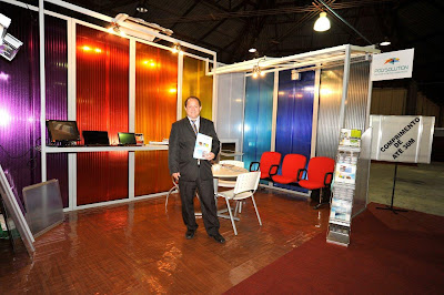 A Polysolution demonstra como foi a MOSTRA de Policarbonatos Especiais na EXPOCON, mostrando os painéis translucidos LBE coloridos da Linha Vision Line, inéditos no BRASIL, a linha de cobertura RT SYSTEM com a Solução Skylight Strip e a cobertura retrátil com as telhas click..!!