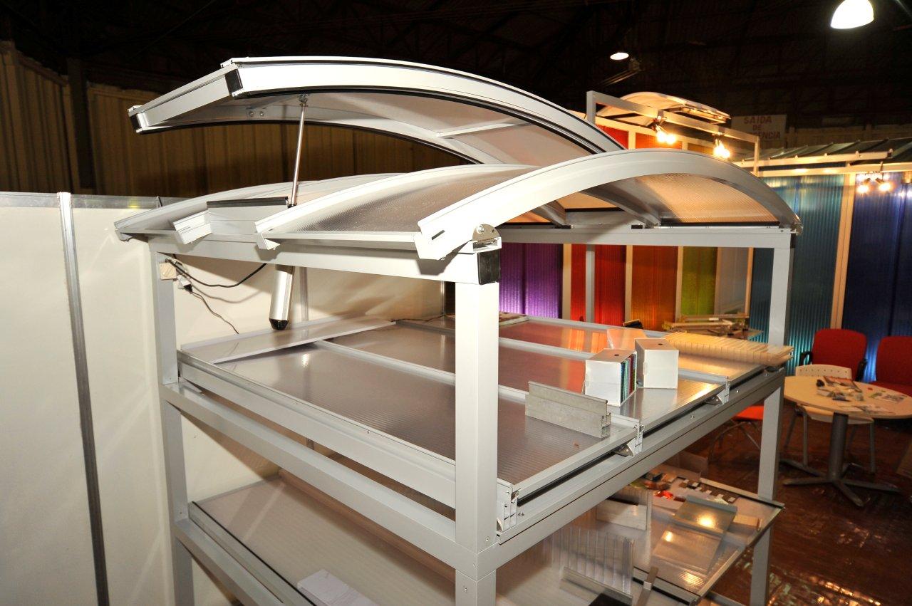 A Polysolution demonstra como foi a MOSTRA de Policarbonatos Especiais na EXPOCON, mostrando os painéis translucidos LBE coloridos da Linha Vision Line, inéditos no BRASIL, a linha de cobertura RT SYSTEM com a Solução Skylight Strip e a cobertura retrátil com as telhas click..!!