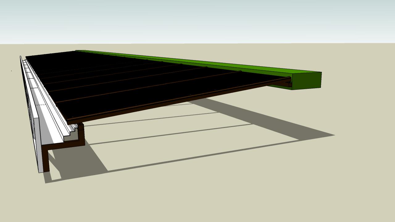 Gostaria de receber um projeto para telha de policarbonato click transparente ou a Alveolar ( a que tiver o custo menor) para uma área de 3,10 x 2,80. Pretendo colocar na continuação do caimento do telhado da minha área.