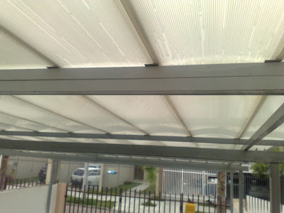 | Telha click instalação vista de baixo – garagem de carro com policarboanto |