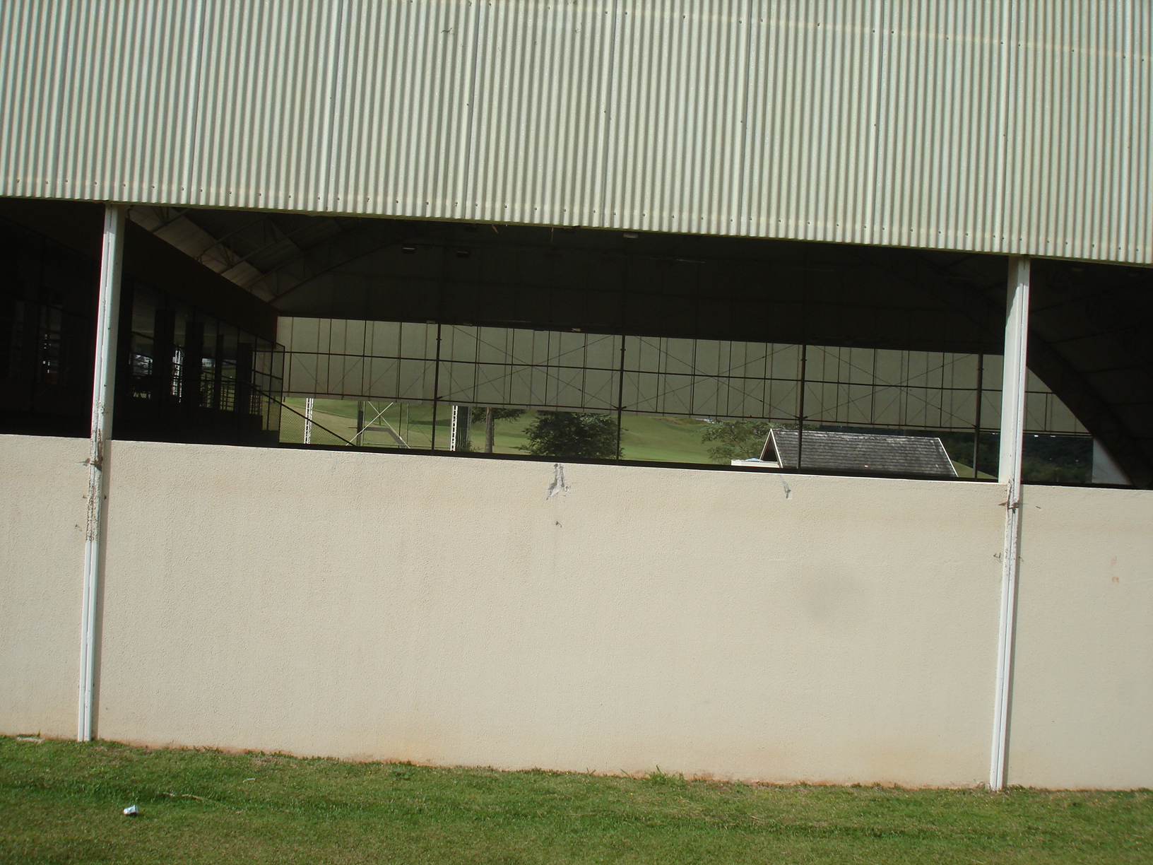 Instalação das veneziana Industrial em policarbonato – Club Alphavile -Foto original Polysolution – aqui uma vista por dentro – na parte superior permanecem as telhas de fibra de vidro ja amareladas e na parte mais branca translucida temos as nossas venezianas